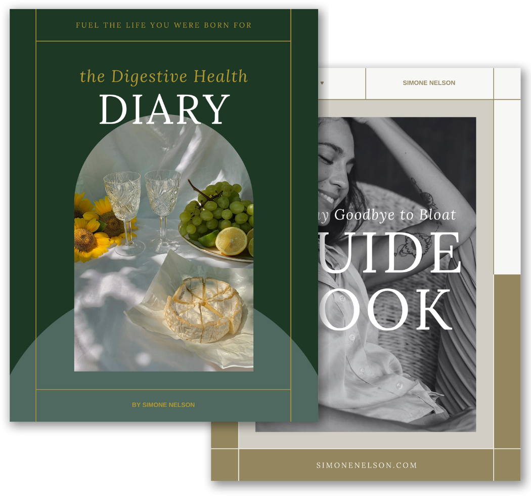 I can’t snap my fingers and fix that, but I can give you two tools that have helped hundreds of women connect with their bodies and reduce, if not resolve their digestive issues: my Digestive Health Diary and Say Goodbye to Bloat Guidebook!